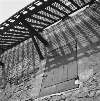Charpente d'auvent avec ombre sur le mur