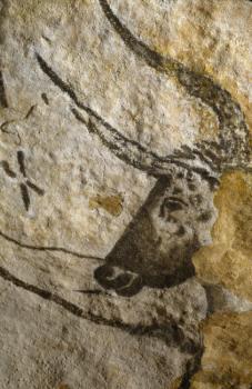 Grotte de Lascaux, paroi droite de la grande salle des taureaux, panneau de l'ours, quatrième taureau