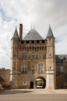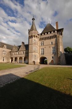 Château de Talcy, cour d'honneur et tour-porche vue de la basse-cour