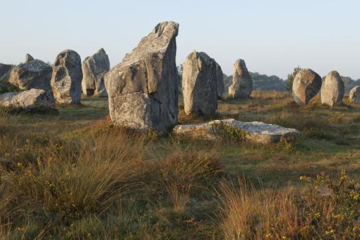 Alignements de Kermario, quelques menhirs se détachant sur le ciel au petit matin