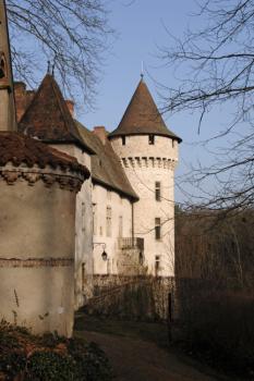 Château d'Aulteribe, flanc est avec, au premier plan, une absidiole de la chapelle