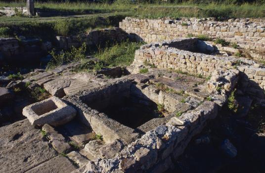 Site archéologique d'Olbia, thermes romains : la piscine et l'hypocauste vus du sud-est