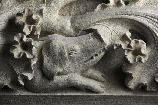 Palais Jacques-Coeur, bordure de rive et figurine décorant le pignon de l'aile sud