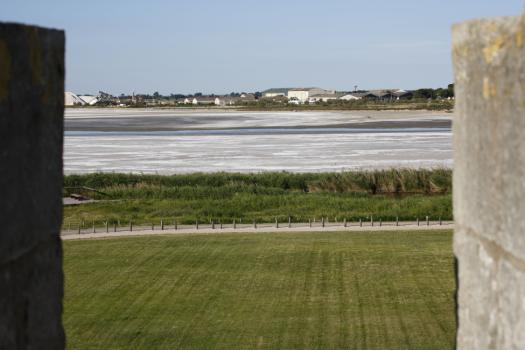 Tours et remparts d'Aigues-Mortes, marais salants vus du chemin de ronde