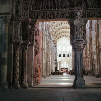 Vézelay, basilique Sainte-Marie-Madeleine, la nef vue depuis le portail central du narthex