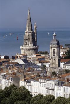 Abbaye de Cluny, clocher de l'Eau bénite et tour de l'Horloge vus du cloître