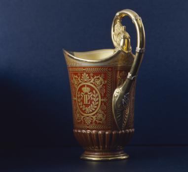 Pot à lait vue de l'anse du service à thé en cabaret aux vues de Saint-Cloud et au chiffre de Louis-Philippe
