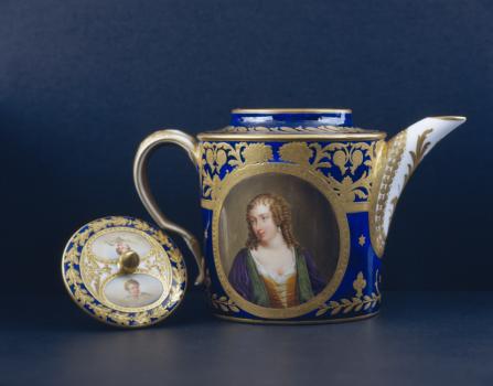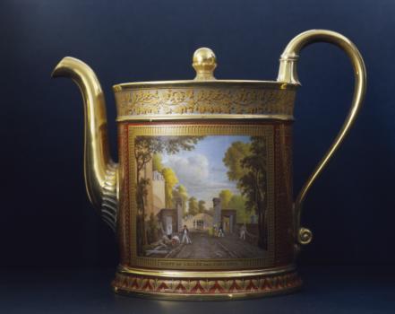 Théière "Porte de l'allée des Cascades" du service à thé en cabaret aux vues de Saint-Cloud et au chiffre de Louis-Philippe