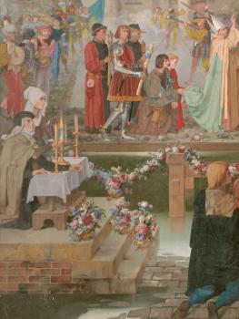 Carton d'invitation ou de placement illustré d'un cortège d'animaux endimanchés se rendant à une soirée (détail)