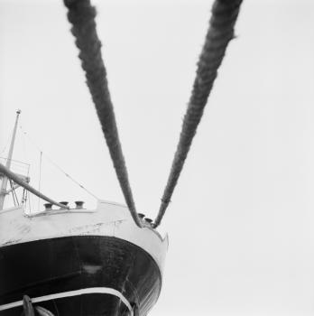 Coque noire à bandes blanches, cordages en V