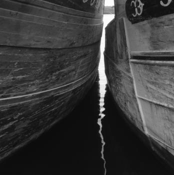 Parties de coques côte à côte, avec reflet dans l'eau, en pointe