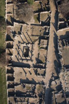 Site archéologique de Glanum, vue aérienne de la maison des Antes et du marché hellénistique