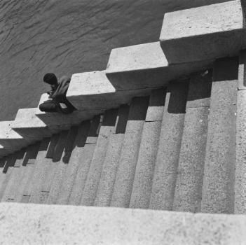 Escalier descendant vers les berges de la Seine, à Paris