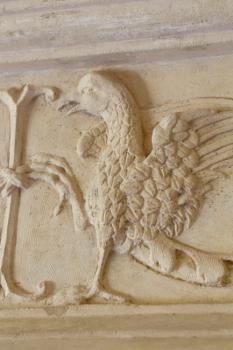 Château de Villeneuve-Lembron, salle des blasons, cheminée (détail)