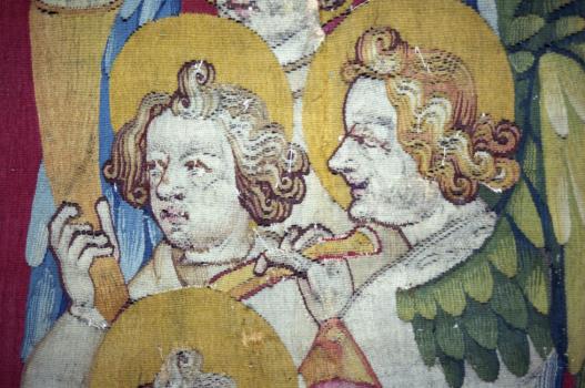 Septième sceau : les sept trompettes, détail des visages de deux anges musiciens