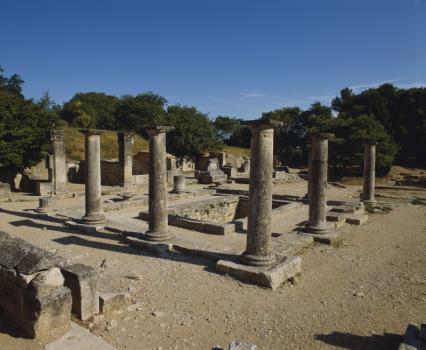 Site archéologique de Glanum, quartier résidentiel, maison des Antes, cour à péristyle et citerne
