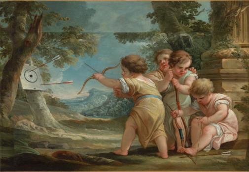 Jeux d'enfants dans un parc : le tir à l'arc (détail)