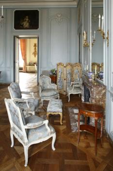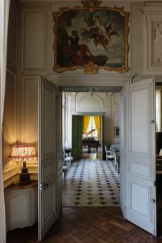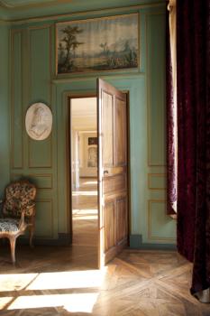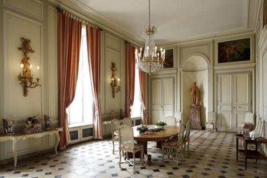 Château de Bouges, enfilade de la salle à manger, de la salle de jeux et du grand salon vue depuis la salle à manger