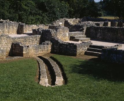Villa gallo-romaine de Montmaurin, cour du second péristyle et son égout d'évacuation des eaux de pluie