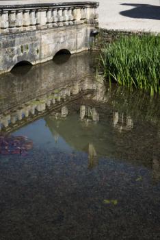 Reflet du château de Pierrefonds dans une étendue d'eau