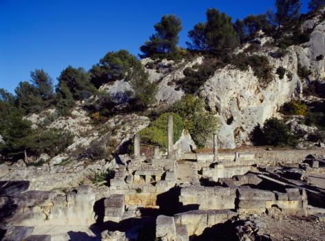 Site archéologique de Glanum, vallon de la source sacrée, temple de Valetudo