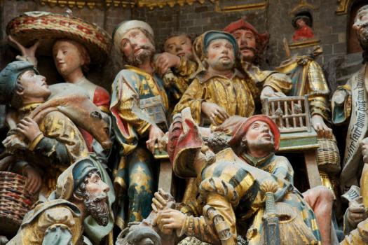 Cathédrale Notre-Dame d'Amiens, côté occidental du bras nord du transept, Jésus chassant les marchands du Temple