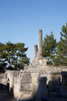 Site archéologique de Glanum, vue en direction de la maison de Cybèle et d'Atys et du petit temple géminé