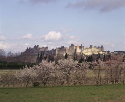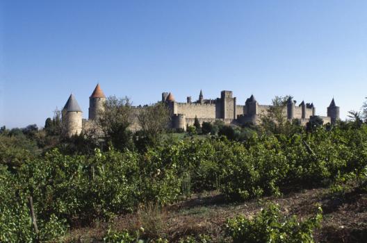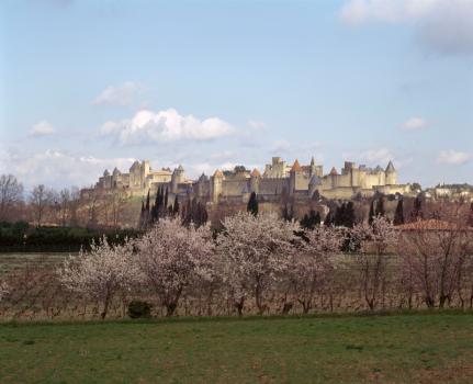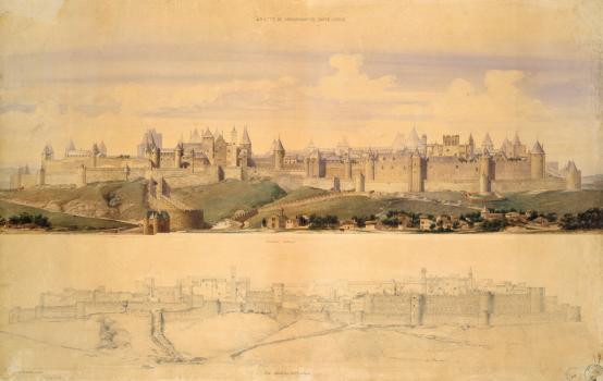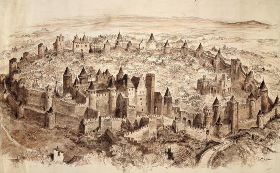 Vue à vol d'oiseau de la Cité de Carcassonne (Médiathèque de l'architecture et du patrimoine Charenton-le-Pont)