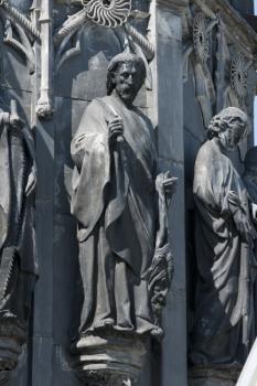 Sainte-Chapelle de Paris, statues des apôtres Philippe, Matthias et Thaddée à la base de la flèche, côté sud